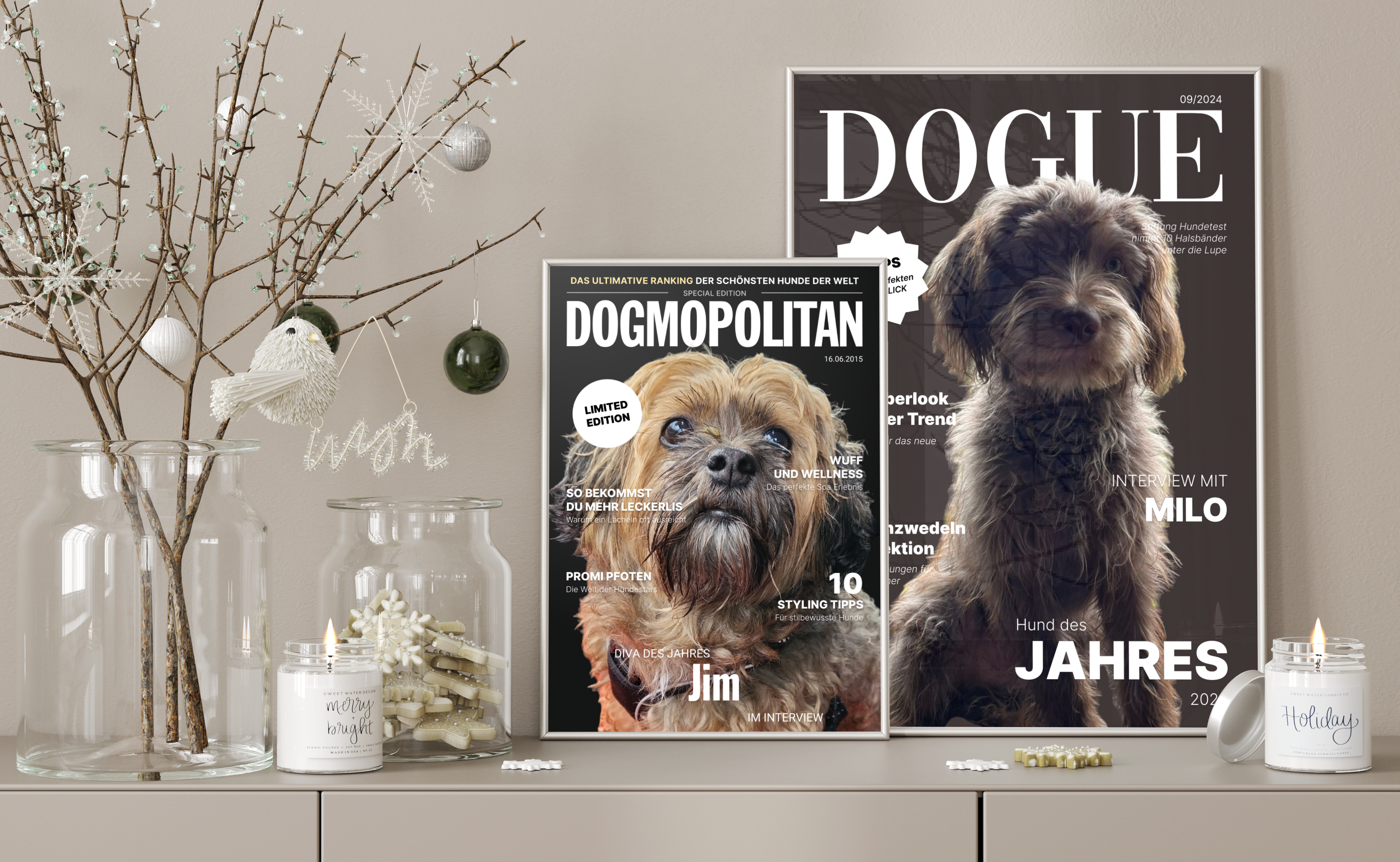 Choose the title of the magazine cover. We currently offer "DOGUE", "FURBES", "DOGS HEALTH" and "CATMOPOLITAN". More will be added in the future.