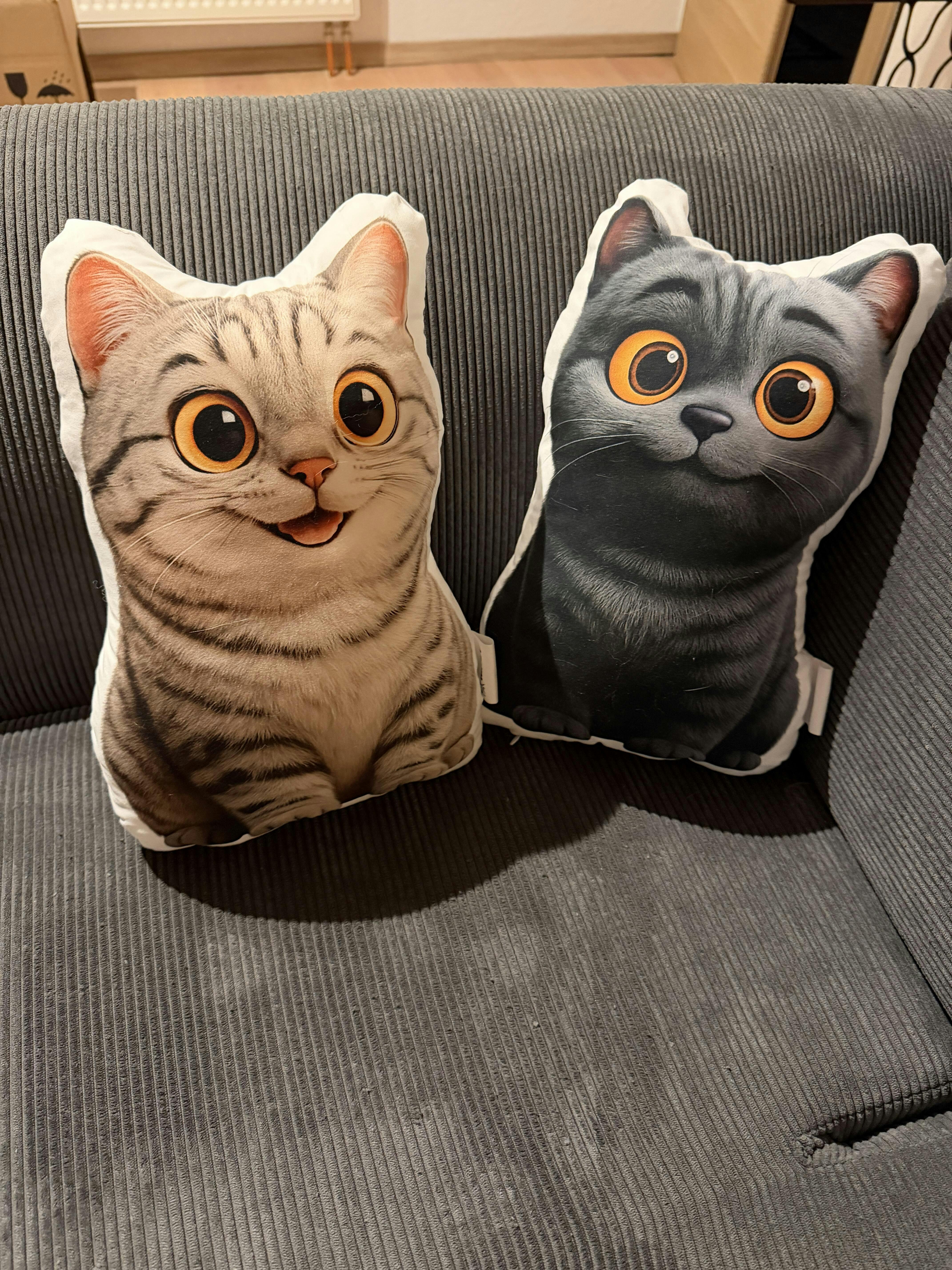 Sehr niedliche Kissen.Schneller Versand.Ein Stern Abzug weil ich die Details an Nase & Mund selbst aufmalen musste, die erkannte die KI leider nicht. Ich habe auch ein YouTube Short Video davon gemacht.