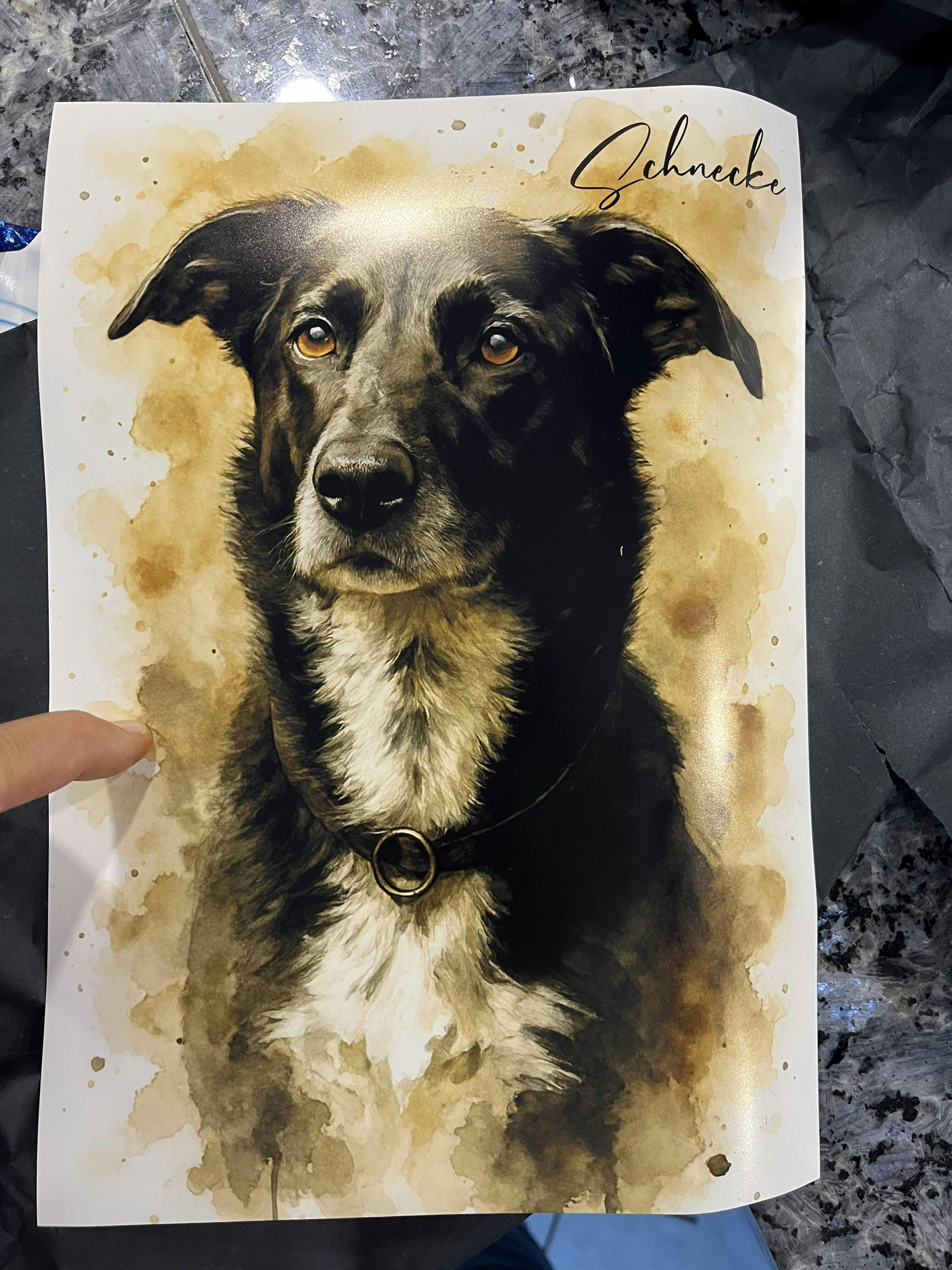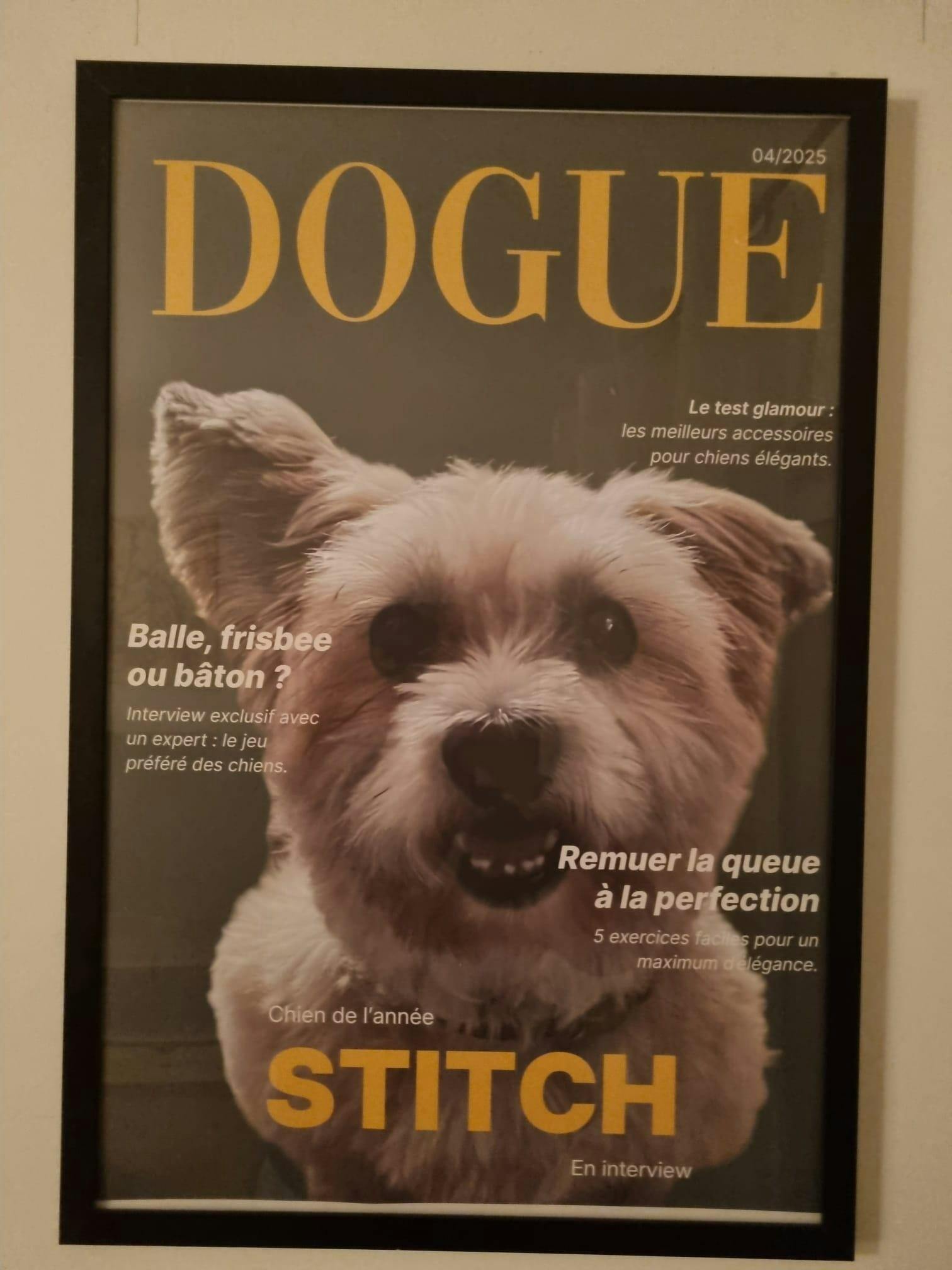 Le portrait de mon chien Yoda, est magnifique, il correspond tout à fait à son expression naturelle, tout en vibrant à la perfection son charisme.
