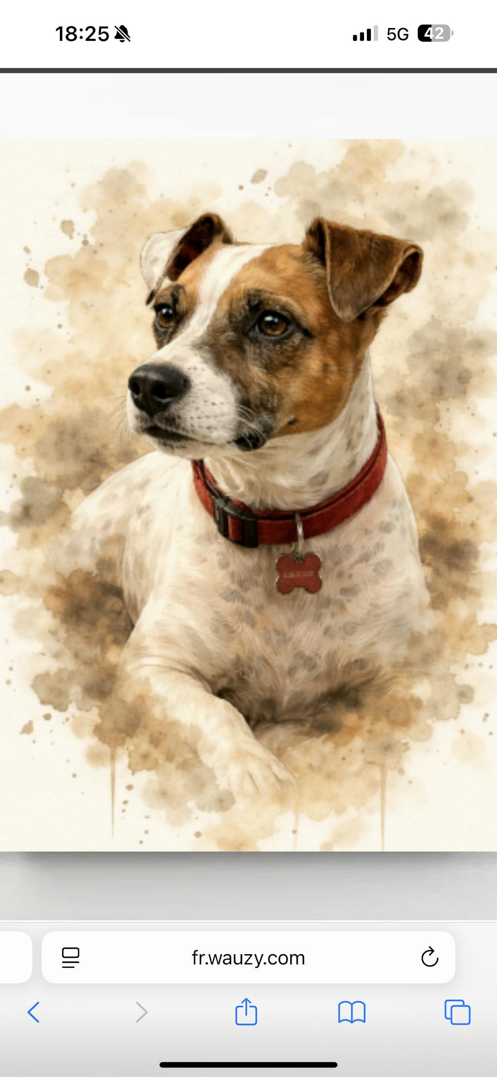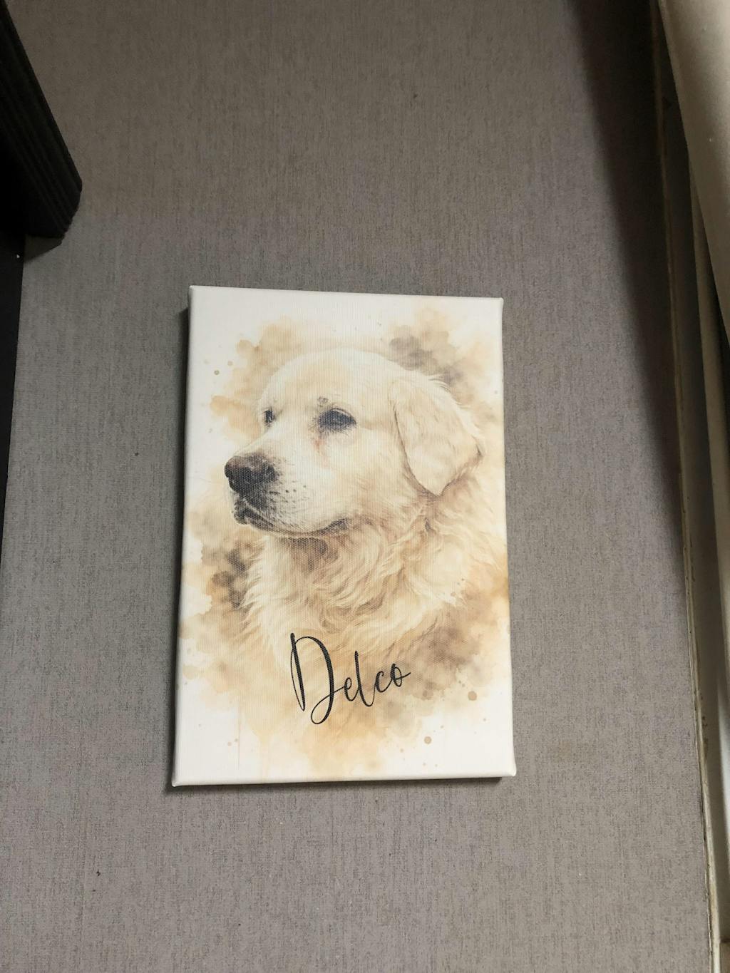 Une commande passée en hommage à notre merveilleux golden que nous venons de perdre. Une toile reçue, elle est juste magnifique tellement réaliste, cela nous a réchauffé le cœur de voir un tel rendu. Nous recommandons sans hésiter wauzy.