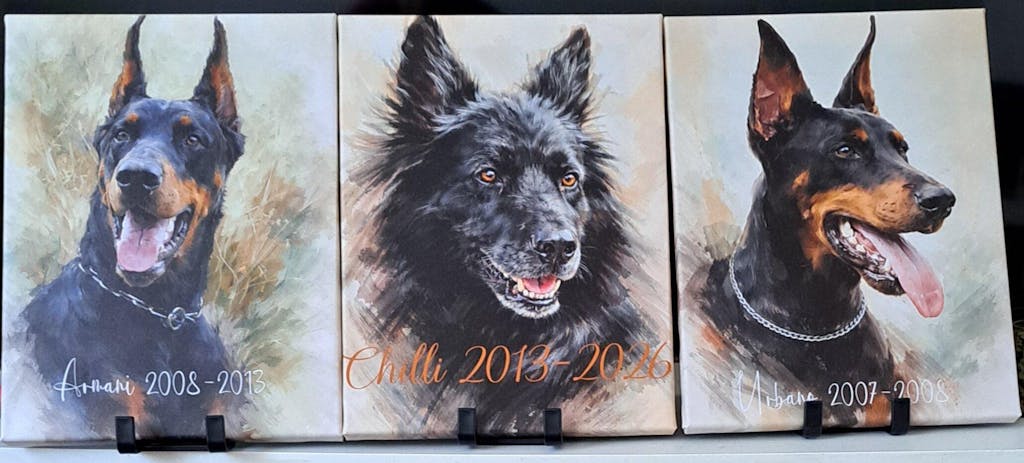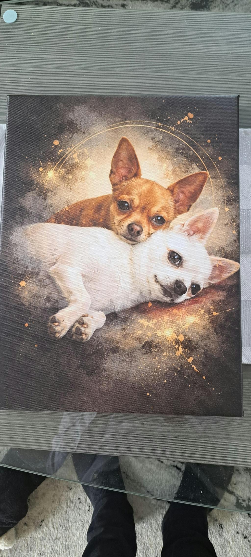 Heute kamen meine drei Seelenhunde an. Ich bin kein Typ der nah am Wasser gebaut ist, aber als ich die Bilder, Leinwand 40x30, auspackte war beim ersten ein "WOW", beim zweiten ein "Wahnsinn" und beim dritten hatte ich dann Pippi in den Augen. So super schön gemacht, sauber verarbeitet. Es war auch noch befestigungsmaterial dabei. Danke Wauzy für diese wunderschönen Bilder. Ich werde mit Sicherheit nochmal bei euch bestellen. Vielen Dank
