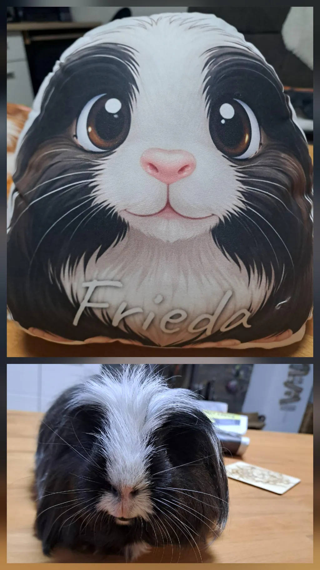 Dienstag bestellt, Freitag erhalten....DAS ist schon ein Knaller! Aber dann sind die Kissen auch noch so schön und knuffig...Unsere Meeris sind prima getroffen! Ganz lieben Dank für die Erinnerung an "immer zu kuscheln".