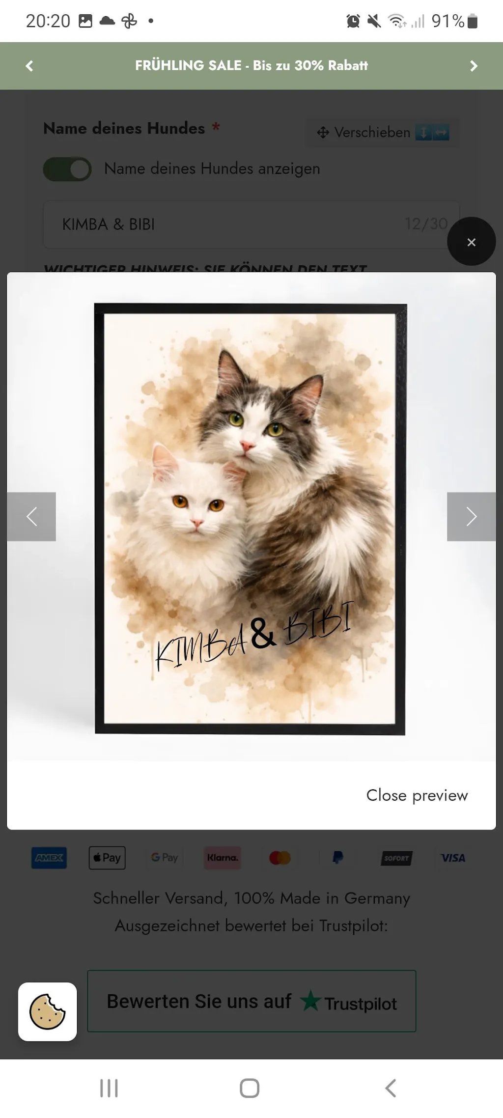 Ich bin vollkommen zufrieden, die Farben und auch der Stoff wunderschön. Es ist eine so schöne Erinnerung an mein geliebten Kater. Dadurch ist er etwas bei mir . Ich kann es echt nur empfehlen.