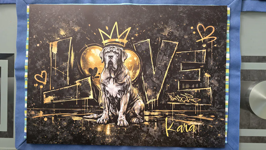 Das Bild ist wirklich schön geworden und den einen Punktabzug gibt es nur weil man es doch sieht das es gedruckt ist. Ansonsten bin ich sehr zufrieden.